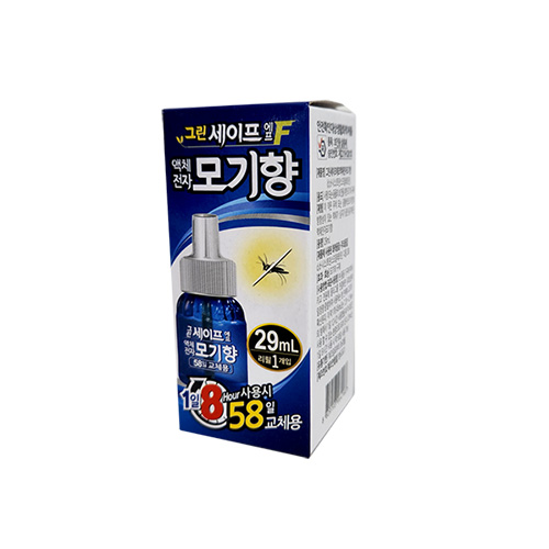 - home > 에어졸.훈연.살충.살서.기피제 > 그린세이프에프 액체전자모기향(58일 교체용)